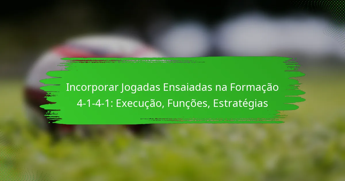 Incorporar jogadas ensaiadas na formação 4-1-4-1 é essencial para maximizar o potencial ofensivo e defensivo de uma equipa. A comunicação clara e a execução precisa dos papéis dos jogadores durante as jogadas ensaiadas, como os cantos e os livres, podem influenciar significativamente os resultados dos jogos. Ao praticar estas jogadas regularmente e adaptar estratégias para explorar as fraquezas dos adversários, as equipas podem aumentar a sua eficácia durante momentos críticos do jogo.