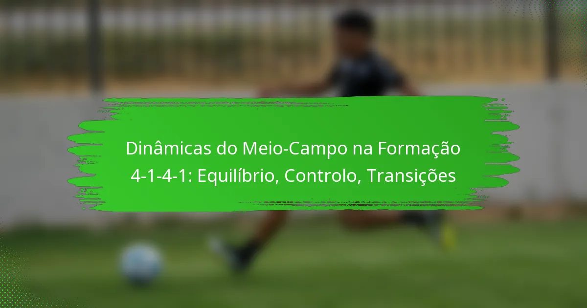 A formação 4-1-4-1 é uma configuração tática no futebol que enfatiza uma forte presença no meio-campo, mantendo a estabilidade defensiva. Esta estrutura permite uma distribuição equilibrada de jogadores, facilitando o controlo eficaz e transições suaves durante os jogos. Os médios desempenham um papel crucial na gestão da posse e na definição do ritmo, garantindo tanto solidez defensiva como apoio ofensivo.